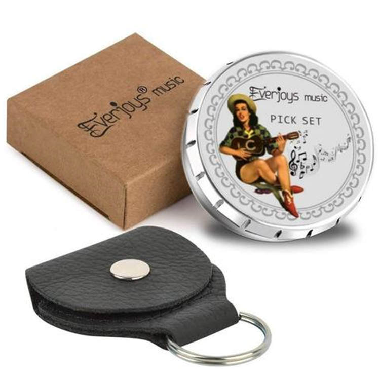 - UNIKA FUNKTIONER: En komplett allt-i-ett-uppsättning innehåller 16-pack Celluloidplectrum och 4-pack unika filtplockar med extra bonus av Leather Pick Holder & Magic Tin Box. Klassisk gitarrplockform