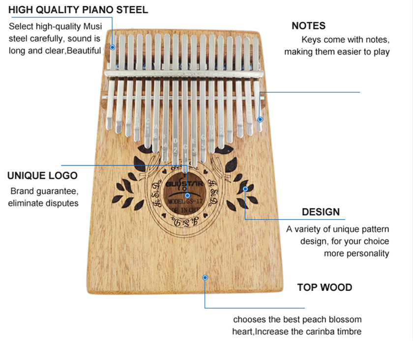 - EN SAMMANFATTANDE ALL-IN-ONE STARTERSETT: Vår kalimba-uppsättning innehåller en 17 nyckel kalimba, hur man spelar sångbok, en polykduk av mikrofiber, en bärväska