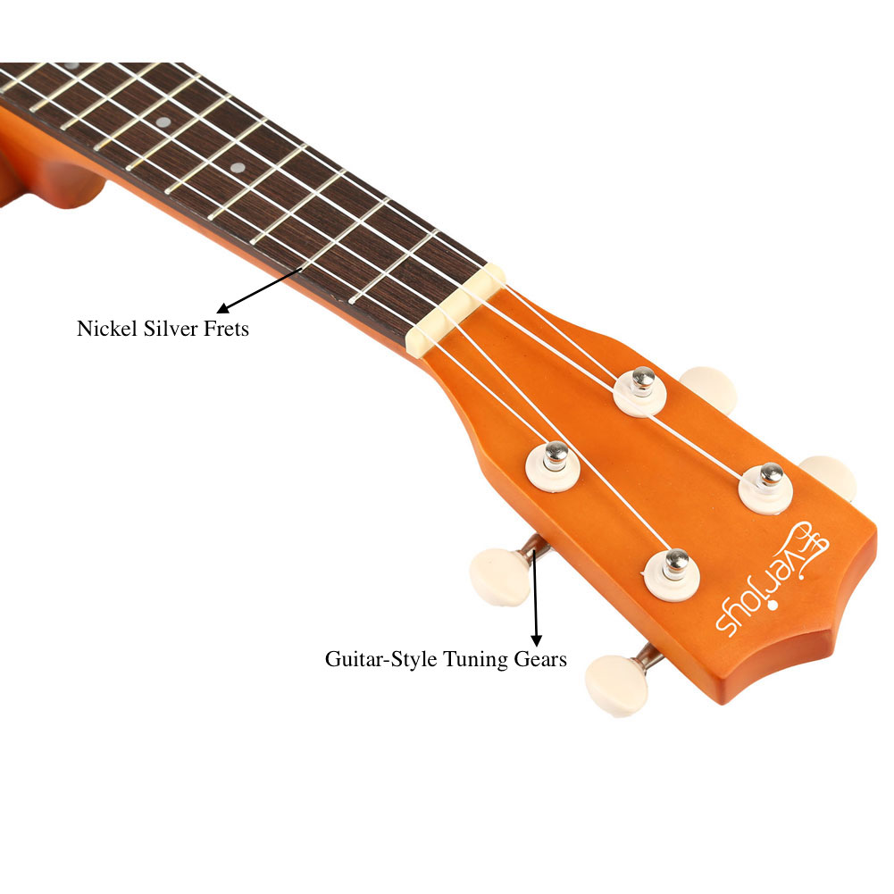 Lätt att lära sig: Spendera mer tid på att spela och mindre tid att ställa in! Exakta och smidiga, förkromade tunrar för gitarrstil för att hålla din ukulele alltid i linje. 12 silverfärgade nickor med korrekta banden som poserar med märken på 5: e, 7: e, 10: e banden på halsen, toppen av fingerplattan