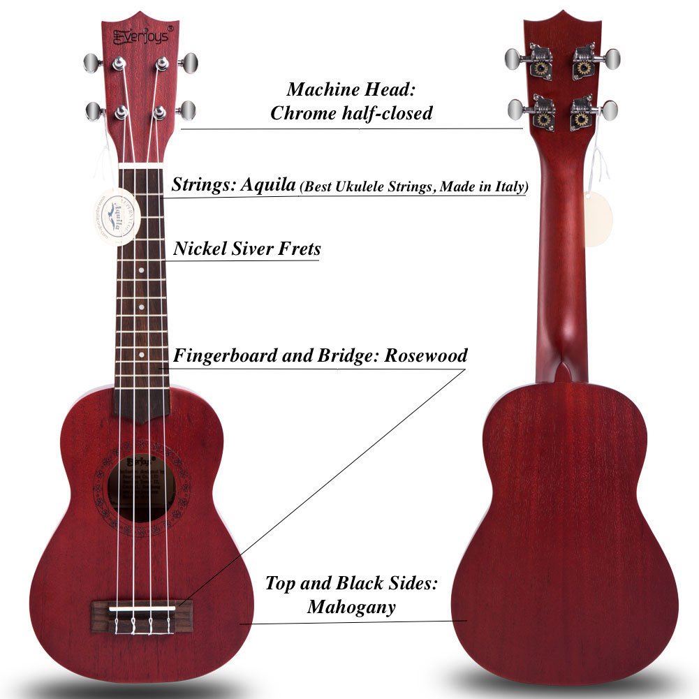 Valt material: Traditionell sopran ukulele med vald mahognykropp och nacke, palissanderbräda och bro, fyra aquila strängar installerade (bästa ukulele strängar, gjorda i Italien)